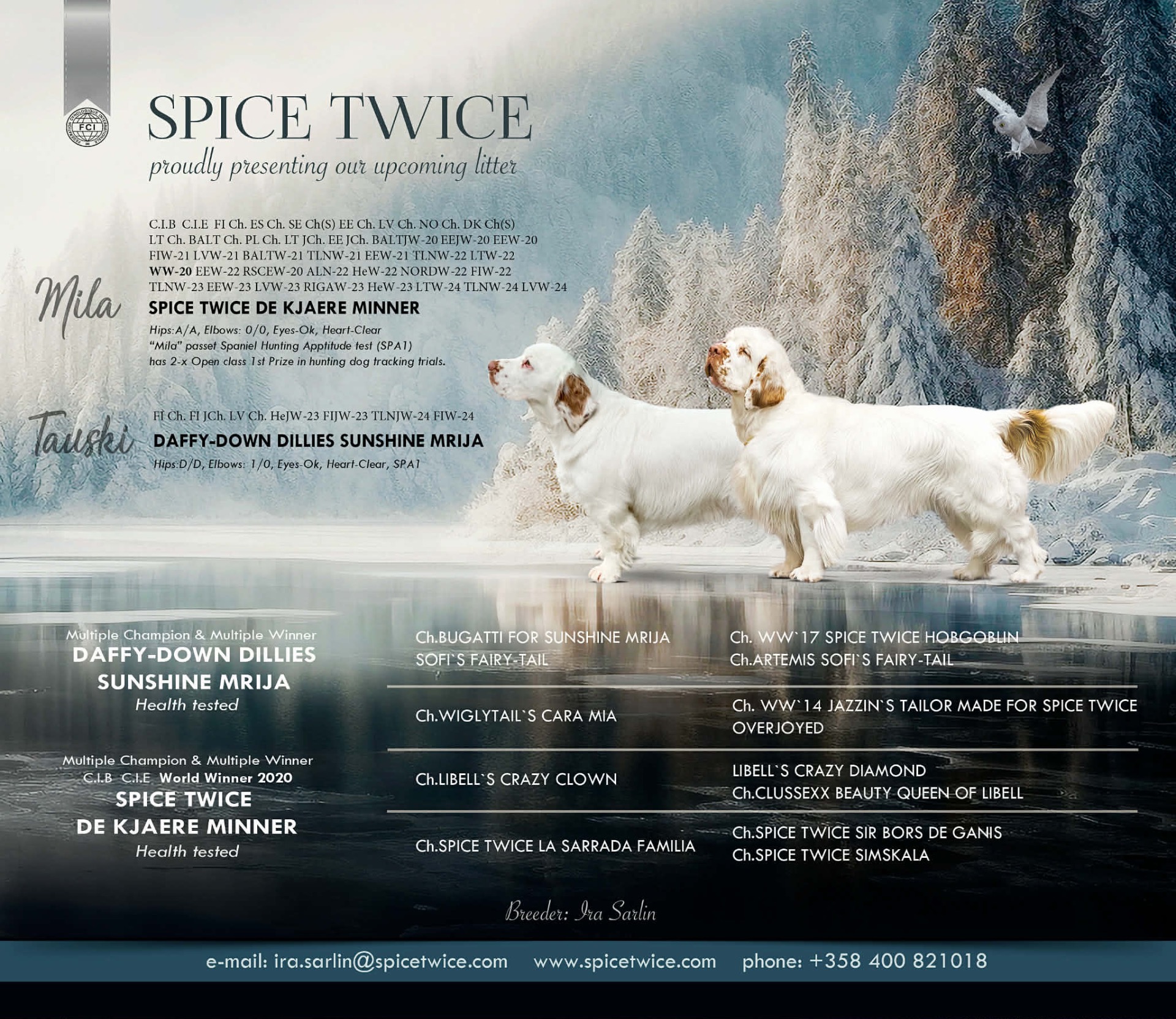 Lisätietoja pentueesta: https://www.spicetwice.com/planned_litter.htm